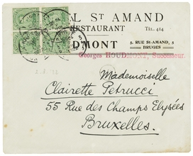 Ne croyant pas de vous écrire encore je vous ai dit en ‘note’ en bas de ma précedente lettre que nous serons après-demain de retour à Bruxelles. C'est que notre ‘patronne’ a augmenté le prix de notre chambre, ce qui a excité à ce point la juste colère de Jeffay, qu'après avoir vainemant tâché de ‘régler cet affaire’, il est, lui aussi, d'avis qu'on fera mieux de retourner à Bruxelles. Ainsi soit-il.