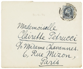 Je ne sais pas trop bien pourquoi j'étais tellement sûr de recevoir aujourd'hui une lettre de vous. Elle n'y est pas! Tant pis; je vous écris sans trop attendre, me disant que vous étiez sans doute très préoccupée par cent mille choses artistiques et mondaines; avalant tout reproche amical.