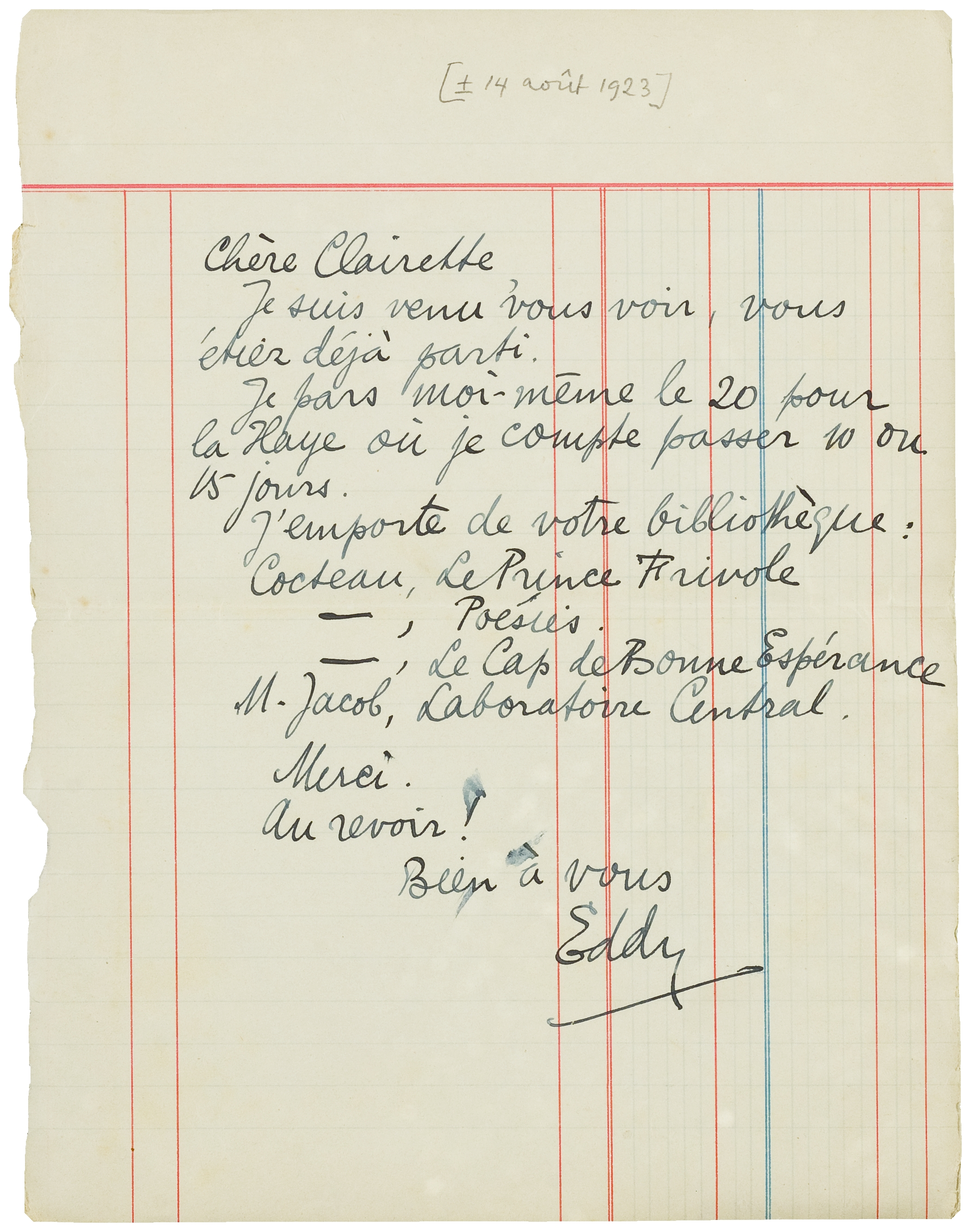 Je pars moi-même le 20 pour la Haye où je compte passer 10 ou 15 jours.