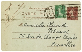 Merci pour votre lettre dont l'écriture comme vous le supposiez, offrait un ‘beau spectacle’ à mon oeil, moins beau pourtant (je suppose à mon tour) que ne l'aurait offert l'auteur au moment où elle écrivait cette écriture. J'ai aimé à penser cela. Merci donc pour la lettre et pour la vision. Je reverrai votre maman demain; quant à vous - si je ne trouve pas un contre-orde chez moi en rentrant - ce sera toujours pour mercredi matin 10h.½. Au revoir, chère Clairette, mille pensées affectueuses. Une ferme poignée de main de votre