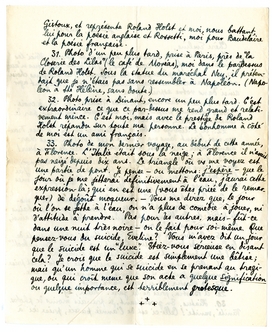 3o. Vous aimeriez vraiment que je vienne tout de suite à Oxford? Cette question est inutile, car vous m'avez écrit avec une spontanéité magnifique, pour laquelle je vous serre fortement la main. Je suis sûr que nous deviendrons d'excellents amis; je commencerai en tout cas avec tout ce que je peux apporter de sympathie; et pourtant, je vous assure que j'hésite. J'ai bien peur que - malgré toutes ces photos - je ne vous cause une assez grande désillusion. Et alors, par gentillesse, par politesse - vous serez obligée (ou vous croirez telle) de faire bonne mine à mauvais jeu, de me ‘piloter’, de vous occuper de moi, etc. - Attendez vous à ceci: si je viens, j'aimerais voir le moins de gens possible; de préférence rien que vous. Quand vous ne serez pas là, je m'occuperai tout seul de la ville, des environs, vous ne devrez pas worry about that. Si je viens, promettez-moi d'avance que que vous me considererez comme un étranger en voyage, à qui vous auriez déjà rendu le service de lui retenir une chambre; j'ai l'habitude du voyage, je me débrouillerai très bien avec l'anglais, et je me sentirai terriblement mal à mon aise, si j'avais l'impression que je vous dérangeais. - Si vous me promettez tout ceci, je tâcherai de venir, peut-être vers le milieu du mois prochain (?). Dites-moi pour cela: