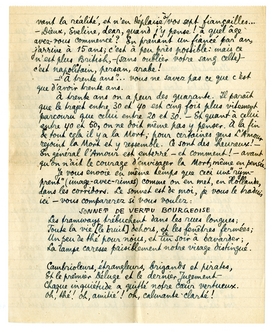 Je transcris ici par coeur un poème qui se trouve dans Barnabooth justement, et qui est de lui à une femme plutôt-du‘monde. C'est le seul poème que j'aie jamais traduit; mais aussi il me semble que - mot pour mot - je pourrai l'avoir écrit et qu'il m'a été volé.