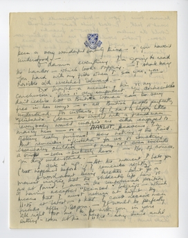Oxford has been more than usual artificial this week. - This ‘ambiance’ inclines me more than ever to ‘vrai’-ness. I want only the solid things of life - & the rest - no matter. If you don't love me as I would have you, I shall not break my heart (even if I love you) - for I am very old in my head in spite of my twenty-two years - & shall merely - go on - for though I have not your love, I shall have been near to something very fine & great & noble in life - & God knows I have never expected the ‘bonheur absolu’. I shall poke my fire, & light a cigarette, & smile somewhat sadly (for we Britishers only permit ourselves that: our sense of control, you know) - & seek for the few solid things I have - & learn to be happy that way. -