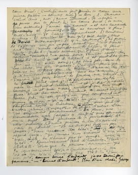 Car, les évènements* de ce soir font que je me demande encore une fois si je crois à l'amour (britannique) - c'est-à-dire le Grand Amour - ‘love’ sans phrase. J'ai l'impression que non - mais sans doute que cela dépend des gens. - Mais n'analysons plus. Tout ce que je sais c'est que votre cerveau m'intresse, que je prends très facilement l'attitude d'un enfant près de vous (bien que ce ne soit pas a demain ...) et que je ne suis pas seule à ‘allumer’ les gens ‘ Tout simplement, soyons simples et vrais - et tâchons de comprendre et de créer une nouvelle amitié fort satisfaisante (et dans ce cas-là il ne faut pas rire à mes préjugés britanniques... - qui sont bons pour la société, je pense) - qui ne sera ni Love ni l'amour (entendans la passion poussié à dernière limité) ni amitié, ni affection familial. - J'ai l'impression que cela pourrait produire de belles choses...