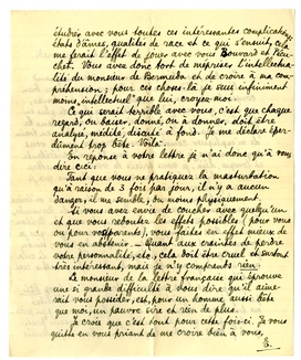 Le monsieur de la lettre française qui éprouve une si grande difficulté à vous dire qu'il aimerait vous posséder, est, pour un homme aussi bête que moi, un pauvre sire et rien de plus.