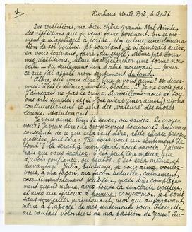 Des répétitions, ma bien chère grande Mal-Aimée, des répétitions que je veux faire posément. En ce moment je m'applique à écrire. Un calme, une domination de soi voulus. Et pourtant, je n'aimerais guère, en vous écrivant, faire ‘du style’. Même pas pour mes répétitions. Même pas pour rechercher une forme nouvelle - ou seulement un habit nouveau - pour ce que j'ai appelé mon sentiment de fond.