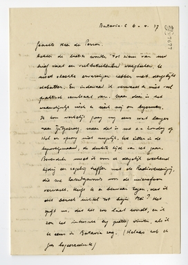 Om nog even op Uw brief terug te komen, daar spreekt dus precies dezelfde aarzeling uit van te moeten kiezen tusschen ‘koloniseerende prollen‘ en Inlandsche ....... , dat ook mijn deel is. Uw sympathie voor de Inlanders vind ik best en uw verachting van de Hollandsche prollen uitstekend. Hoe tragisch is het dus, dat U zich – als u met D.D. geen Aziaat wil worden – na 3 jaar met deze prollen zult moeten vereenigen en zult moeten erkennen, dat je als kolonisator – slechts kolonisator kunt zijn (als je niet wilt, dat je nek wordt afgesneden.) Door gebruik te maken van den term ‘elementair voelen en denken’ keert u terug tot de phasenindeling, die me onbruikbaar voorkomt. Bovendien wat wil dat zeggen? Voelen is van nature elementair, maar toch zijn deze menschen, zooals u zegt, ook ‘uitgeslapen’. En wat stelt U daar tegenover? In de eerste plaats: waardeering voor kwaliteit, voor karaktergrootheid etc. Dat is dus een gevoelsstandpunt en al evenzeer ‘elementair’. Ik zou dus moeten concluderen, dat U wat het voelen betreft aan den kant van D.D. staat en wat het denken betreft een respijt van 3 jaar neemt. Een andere vraag is, of er aan de overkant, bij de kolonisators dus, geen karaktergrootheid kan zijn. Daar ligt misschien Uw redding in het conflict van voelen en denken. Ik zie u al als biograaf van Idenburg en andere dominees. Tot ziens!