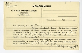 Morgen verschijnt Coster. Ik ben zeer benieuwd naar de recensies, die komenzullen. Ik stuur ze U natuurlijk. Het Vaderland heb ik geen ex. gezonden op uw verzoek, doch dit blad is voor de verkoop zeer van belang. Zouden wij toch niet een ex. zenden aan b.v. de redactie?
