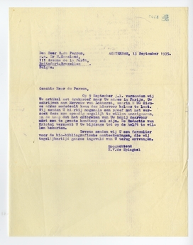 Tevens zenden wij U een formulier voor de bio-bibliografische aanteekeningen, die wij tegelijkertijd gaarne ingevuld van U terug ontvangen.
