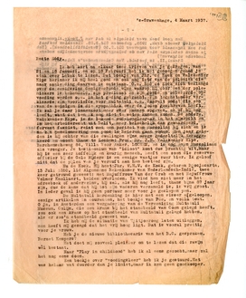 Je vindt Bandoeng en rotoord, maar toch hoop ik dat je daar een baantje krijgt. Het moet een van de gezondste streken zijn, en dat is ook wat waard. Hier viert het idiotisme hoogtij, steeds meer millioenen en milliarden voor de kanonnen, in Spanje schiet het ook al niet op, ze gaan nu het zenden van hulptroepen beletten. Het werd tijd, want als het lang zoo doorging zouden er op het laatst geen spanjaarden meer vechten, maar wel duitschers, russen en dergelijk tuig. En zoo lang Amerika en Engeland paraat zijn zal Japan weinig kans hebben op ons warm Indië te gaan zitten, en wie weet gaan ze nog eens met de russen bakkeleien, dan eet de een den ander op.