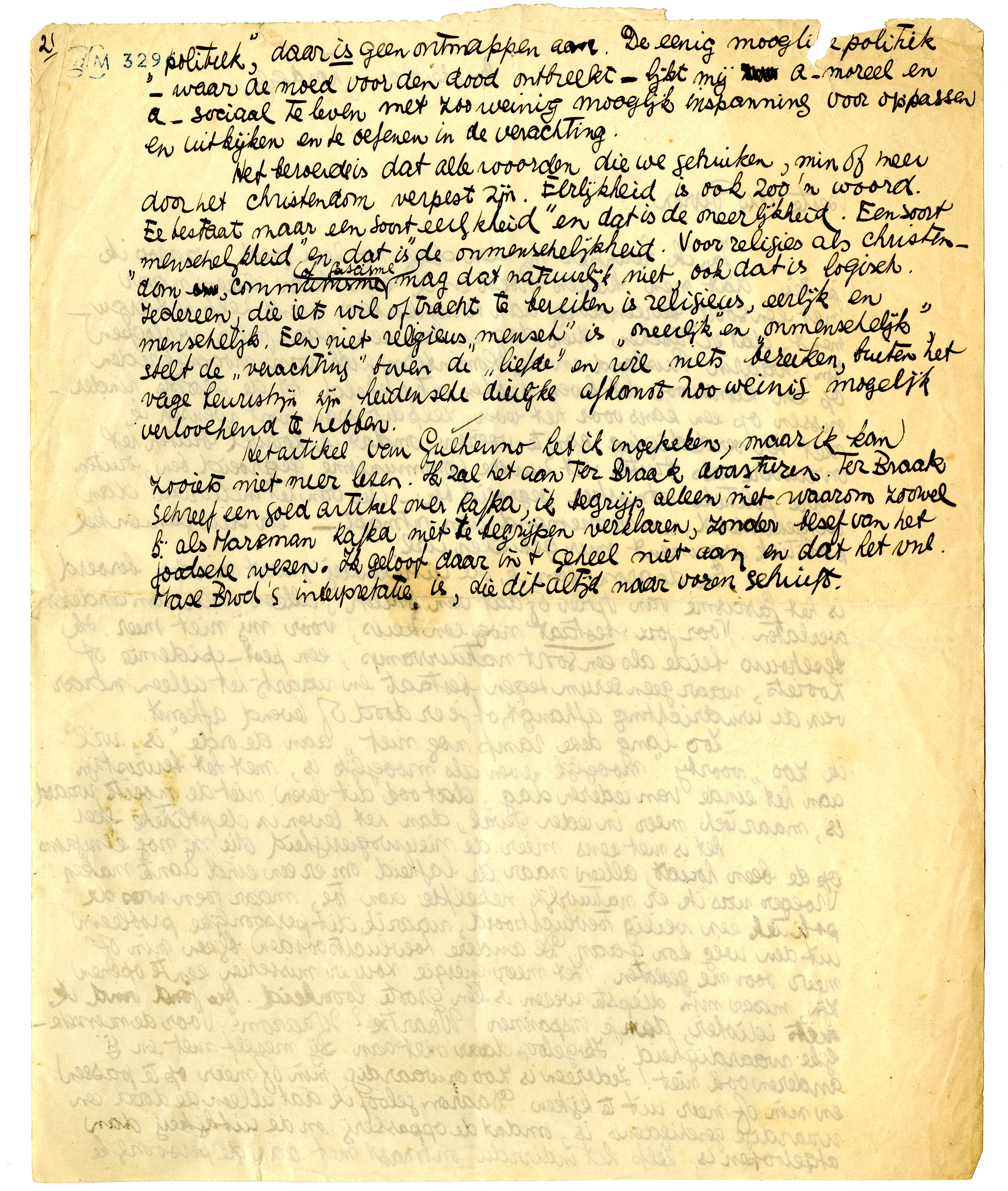 artikel over Kafka,167 ik begrijp alleen niet waarom zoowel hij als Marsman Kafka niet te begrijpen verklaren, zonder besef van het joodsche wezen. Ik geloof daar in 't geheel niet aan en dat het vnl. Max Brod's interpretatie is, die dit altijd naar voren schuift.
